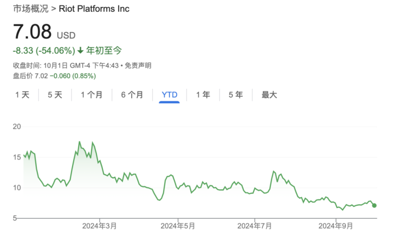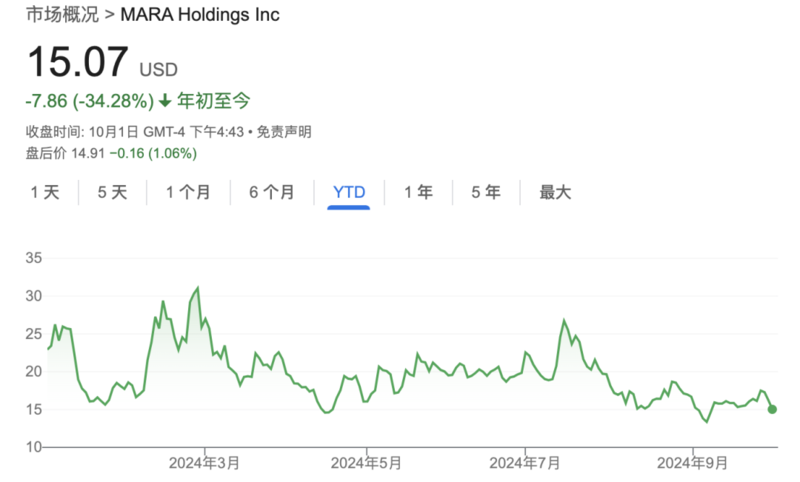 行情数据显示,美国两家最大的矿商公司MARA Holdings和Riot Platforms的股价今年分别下跌了34%和54%。