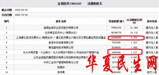 截至2020年9月30日,上海睿亿投资发展中心(有限合伙)-睿亿投资攀山六期大宗交易私募证券投资基金为公司第三大流通股股东,持股2000万股,占流通股比例的5.470%,光大永明资管-兴业银行-光大永明资产聚财121号定向资产管理产品为第六大流通股股东,持股445.06万股,占流通股比例的1.217%。