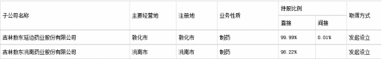 吉林敖东洮南药业股份有限公司成立于1998年2月6日,注册资本6018.67万人民币,吉林敖东药业集团股份有限公司为大股东,持股比例94.84%。吉林敖东药业集团股份有限公司成立于1993年3月2日,注册资本11.63亿元,于1996年10月28日在深交所挂牌,截至2020年9月30日,敦化市金诚实业有限责任公司为第一大股东,持股3.10亿股,持股比例26.65%。公司2020年半年报显示,公司直接持有吉林敖东洮南药业股份有限公司98.22%比例股份。
