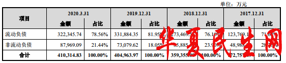 公司流动负债占负债总额的比例均超过70.00%。报告期各期末,中伟科技流动负债分别为12.38亿元、27.35亿元、33.19亿元、32.23亿元,占比71.64%、76.10%、81.95%、78.56%。