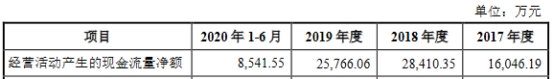上述同期,公司经营活动产生的现金流量净额分别为1.60亿元、2.84亿元、2.58亿元、8541.55万元。其中,销售商品、提供劳务收到的现金分别为16.53亿元、22.88亿元、18.22亿元、7.47亿元。