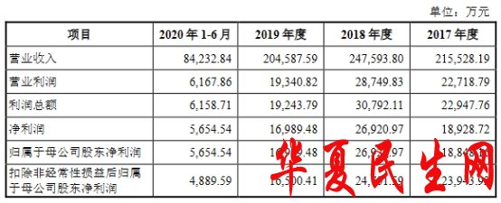 2017年至2020年1-6月,森林包装营业收入分别为21.55亿元、24.76亿元、20.46亿元、8.42亿元,实现归属于母公司股东的净利润分别为1.88亿元、2.69亿元、1.70亿元、5654.54万元;实现扣除非经常性损益后归属于母公司股东的净利润分别为2.39亿元、2.47亿元、1.65亿元、4,889.59万元。