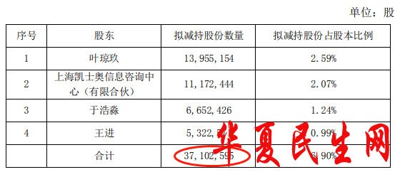 自2019年6月26日发布《简式权益变动报告书》起,凯士奥已累计减持同花顺股份272.83万股,占同花顺总股本比例的0.51%。