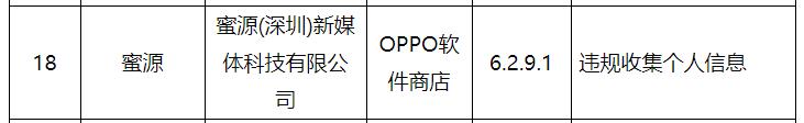 其中,由蜜源(深圳)新媒体科技有限公司开发的APP蜜源(版本号:6.2.9.1)被认为涉及违规收集个人信息的问题。应用来源为OPPO软件商店。