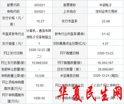 今日新股申购:中瓷电子、火星人、西大门、奥普特