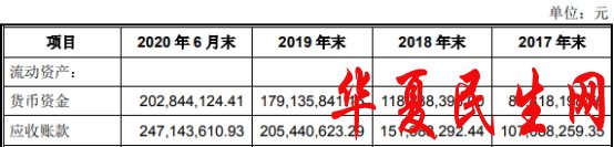 公司2017年末至2020年6月末货币资金分别为8381.82万元、1.18亿元、1.79亿元、2.03亿元;应收账款分别为1.07亿元、1.52亿元、2.05亿元、2.47亿元。