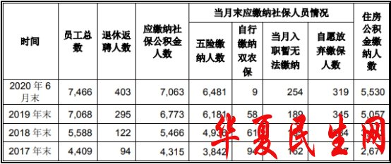 特发服务2019年员工人数7068人,2000人未缴住房公积金。2017年末至2020年6月末,特发服务在册员工人数分别为4409人、5588人、7068人、7466人。