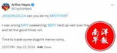 传奇交易员、BitMEX首席执行官Arthur Hayes周一(9月23日)认错,原本预期上周发生的“日元套利交易”未发生,美联储决议降息50个基点,日本央行维持利率不变后,比特币周末大涨意外跑赢...