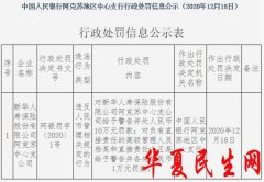 中国经济网北京12月24日讯央行网站近日公布的行政处罚决定书(阿银罚字〔2020〕1号)显示,新华人寿保险股份有限公司(简称“新华保险”,股票代码601336)阿克苏中心支公司存在违...