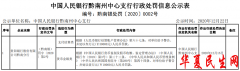 中国经济网北京12月23日讯中国人民银行贵阳中心支行昨日公布的中国人民银行黔南州中心支行行政处罚信息公示表(黔南银处罚〔2020〕0002号)显示,贵阳银行股份有限公司(以下简称...