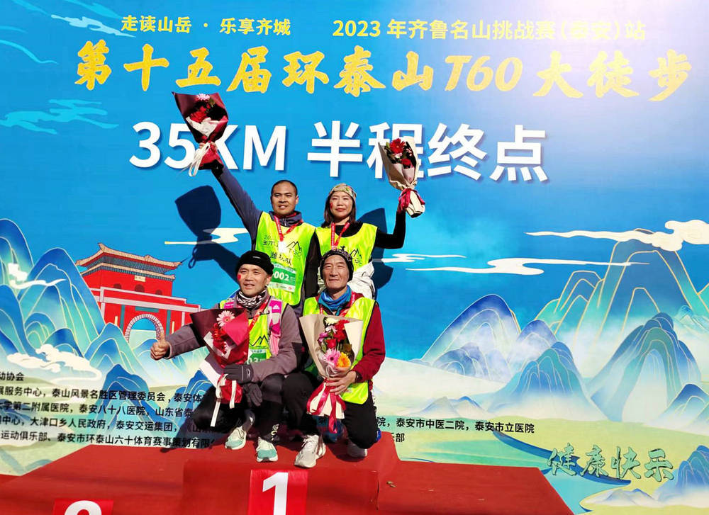 环泰山T60大徒步活动不为名来,不为利往,健康徒步,量力而行。本届赛事在医疗救护方面做了全方位保障,得到了山东第一医科大学第二附属医院,泰安八十八医院,山东省泰山医院,山东第二康复医院,泰安市人民医院,泰安市中医二院,泰安市立医院等七家医院的大力支持。沿途设置了医疗救护点,配备医护人员、救护车等相关应急医疗设备,每个医疗救助点配有急救药品和物资,沿途分时段有急救跑者为参赛者保驾护航。