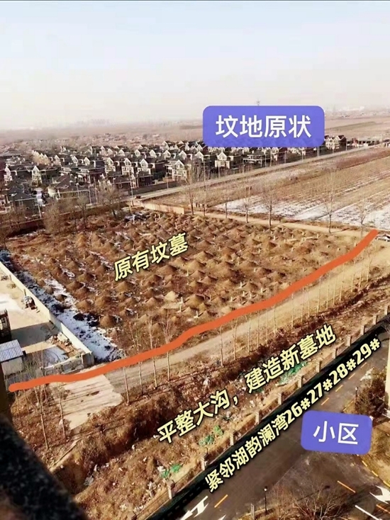 在我们长途漫漫的维权路上,墓地也逐渐发生了变化。墓地扩建,竟然修到了小区围墙根,新增上百个即将入驻的新墓。心死莫过于此,走投无路求助媒体!图片如下: