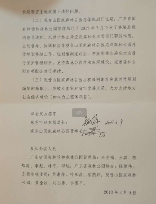 2020年5月26日、6月30日,观音山两次向樟木头镇政府提交书面报告,请求镇政府出面协调勘定观音山森林公园边界、协调相关部门尽快完成总体规划修编工作,均被拒绝。