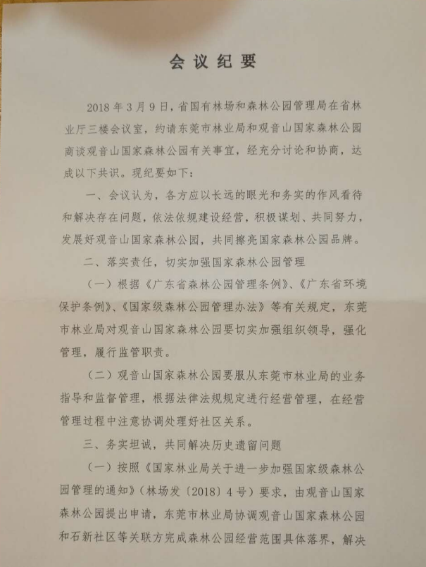 2023年11月初,观音山分别就公园边界需详细的坐标工作和协调总体规划编修工作,再次向樟木头镇委镇政府和东莞市林业局提交申请,至今不予回复。