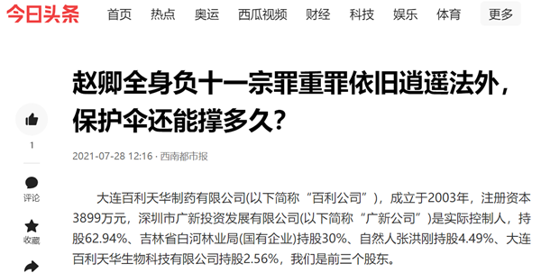 自2007年赵卿全侵占百利公司股权到2021年百利公司破产,赵卿全涉嫌十一宗罪,却至今逍遥法外。