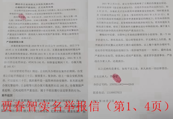 我叫贾春智,女,今年60岁。2020年9月14日,我与王晨(原儿媳)因琐事引发争吵。后来王晨报警,山东省潍坊市奎文区公安分局东关派出所在接警处理期间,派出所民警赵帅严重违反办案程序,造成之后一系列严重侵害我实体权利的事件。因此,我特向中纪委、全国和山东省政法队伍整顿领导小组实名举报:东关派出所民警赵帅严重违反办案程序,致使我人身权利受到严重侵害,希望上级领导介入调查处理,还我公正。