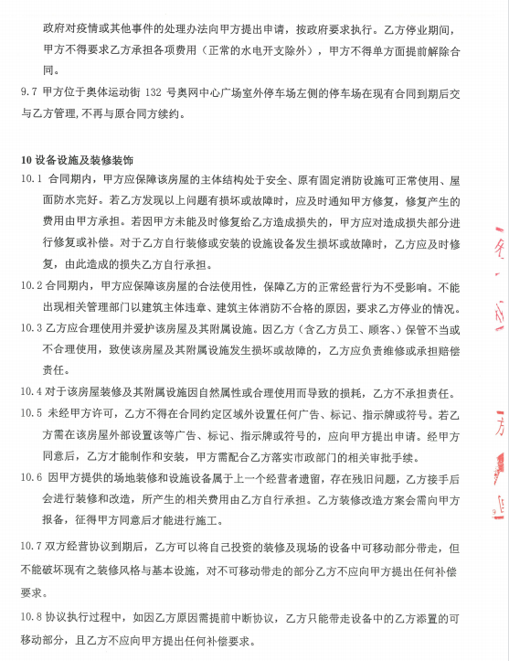 4、根据《合作经营协议》第5.1条、第10.1条、第10.2条等均明确约定,昊阳公司应保证房屋的主体消防设施满足使用功能和原有固定消防设施可正常使用,而案涉房屋的室内消防栓系统、自动喷水灭火系统均属于主体消防设施,且都是昊阳公司提供给食在一方公司的原有固定消防设施,故因案涉房屋的室内消防栓系统、自动喷水灭火系统不达标而被相关部门责令整改的责任均应由昊阳公司负责,而非食在一方公司负责。