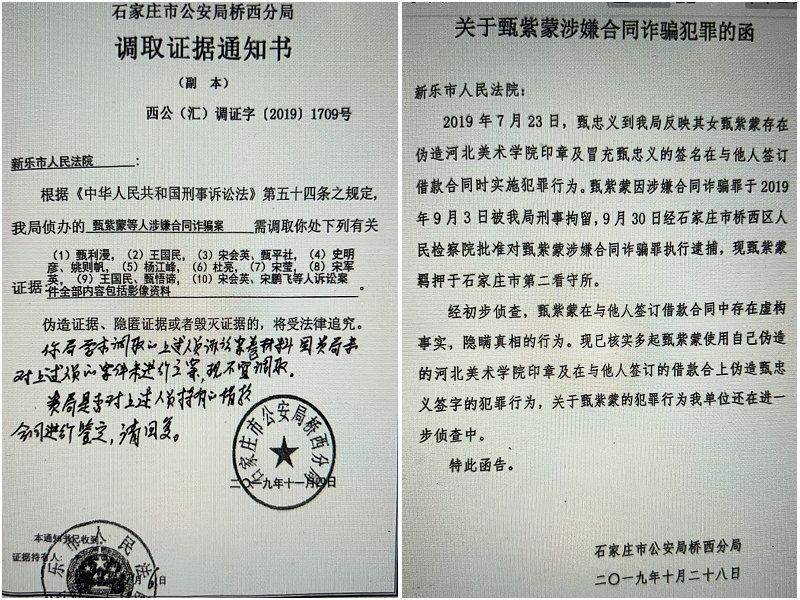2019年11月4日,石家庄市公安局桥西分局在侦办甄紫蒙涉嫌合同诈骗一案时,持书面《调取证据通知书》到新乐市人民法院调取甄平社、宋会英等人的诉讼材料,却遭到新乐市人民法院的拒绝。