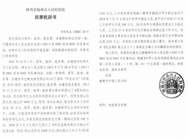 哪里有欺压,哪里就有反抗!徐光荣四处投诉、控告、检举无果,不得已申诉到榆林市人民检察院,案件终于迎来了转机,该院在接到徐光荣的《监督申请书后》,仔细调研了相关案情,提取证据,并于2023年10月30日出具榆检民监(2023)第24号《民事抗诉书》,认为:“2018年5月31日前徐光荣已经将抵债房屋过户给了张伟、侯军、张宏勇、孙建,本案也不属于《民法典》563条规定的当事人可以解除合同的情形。神木市人民法院2021陕0881民初8005号民事判决书认定事实错误,提出抗诉,依法再审”。本案将于2023年11月21日在神木市人民法院另行组庭重审,届时孰是孰非,或可水落石出,真正的还受害人一个公道!