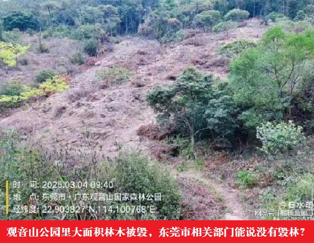 这些情景,可以参考媒体报道的:《国家4A级森林公园竟藏22栋私人别墅》、《20余年间 广东观音山国家森林公园约2000亩生态林被毁 如何破解?》、《4A景区被”毁容” 观音山森林公园遭毁林破坏生态》、《植树节前夕观音山再现毁林乱象,东莞生态保护环境亟待重塑!》、《广东观音山国家森林公园毁林种果为何屡禁不止?》、《从“两高”发布生态环保检察公益诉讼看观音山千亩毁林能否被查》、《观音山国家森林公园二十年被毁林近二千余亩 林长是何表态》、《国家多部门合力守护林草资源,观音山原始次森林被破坏该有人管了》、《观音山国家森林公园毁林、修编真相揭秘》、《盘踞广东观音山国家森林公园违建缘何成“不倒翁”》、《从东莞观音山违建别墅看当地营商环境的现实与隐忧》、《广东深化林长制改革,东莞观音山毁林违建问题能否迎来“终结篇”?》、《评:东莞观音山森林公园毁林现象屡禁不止,谁之责?》、《东莞构建全方位控违治违体系 观音山大量违建无人理》......