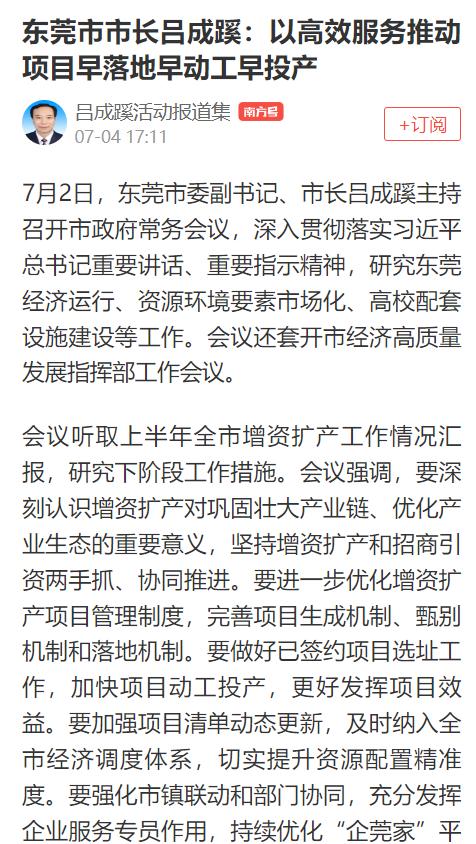 除了报道吕市长不少动作外,南方+也报道了不少东莞市的诸多行动,可谓是行动计划喜人啊!