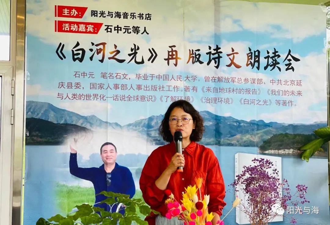 石老师每次都是穿着朴素的衣服,那些照片或者戴着草帽,或者推着自行车,或者在古老的压水井旁,今天的大雨,也是徒步走来,还读了《定风波》“一蓑烟雨任平生,也无风雨也无晴”的诗句。正式这种接近自然的灵魂,写出了文化性艺术性的报告文学《白河之光》。