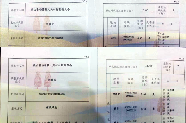 刘善兴、刘善光所说的土地均持有发包方为梁山县杨营镇大吴村村民委员会的正式土地承包合同,合同注明地块是基本农田。