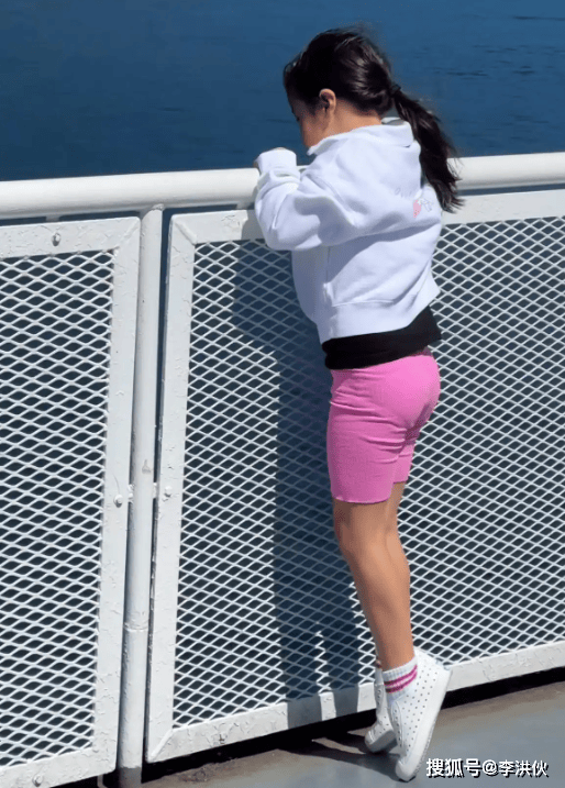 照片里能看到小Sara,穿着粉色小短裤,白色卫衣,背影看上去特别活泼可爱,蹦蹦跳跳的,正是小孩子最天真烂漫的时候。