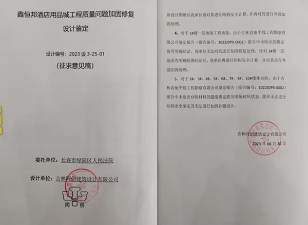 5.吉林省地平线工程勘测有限公司没有结构鉴定资质,所出具结论不能作为加固方案的设计依据,也不能作为评估加固工程造价的依据。