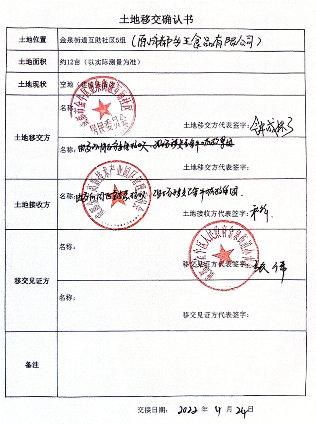 2019年12月6日,金牛区高管委领导亲自到成都尖端公司送承诺函,承诺2021年6月前移交土地给成都尖端公司