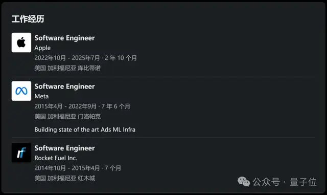后来不知道是不是受到Dima影响,去了Meta从事广告机器学习工作,之后于2022年至2025年在苹果工作。