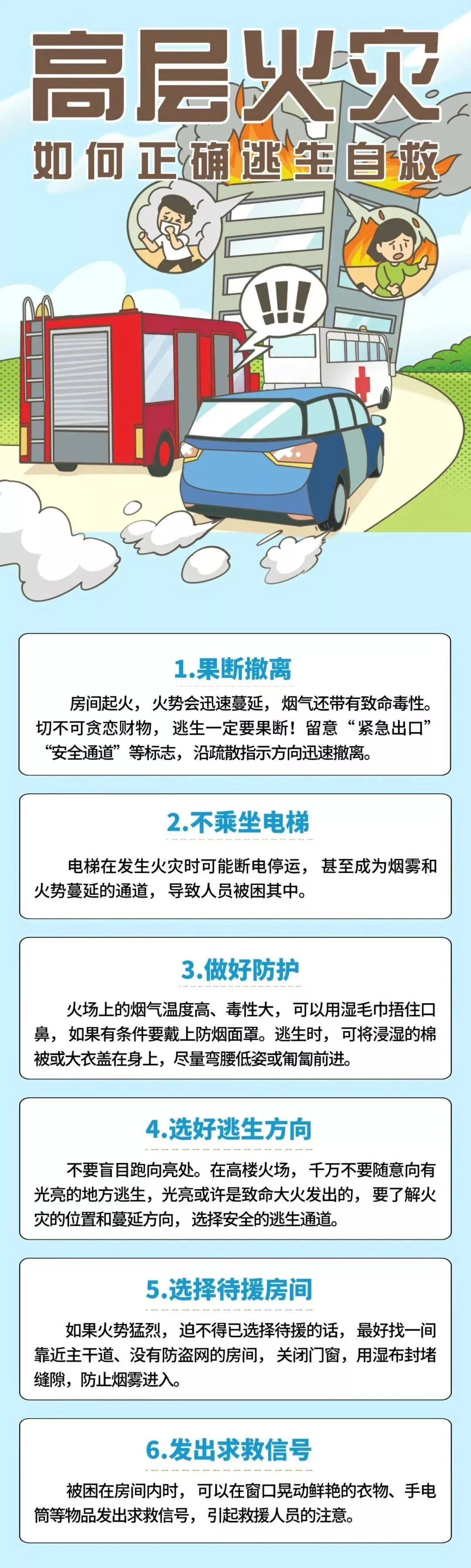 着火层在自家楼下,楼梯间里面没烟,或烟很小,向下跑;楼梯间里浓烟很大,那就立即回家“大火关门”。