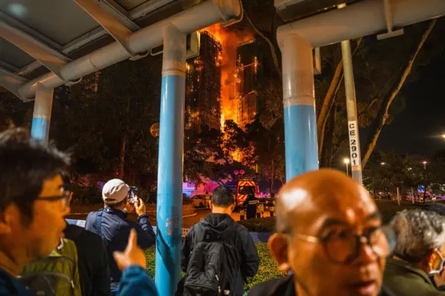 大火仍未扑灭,巿民在宏福苑附近等候