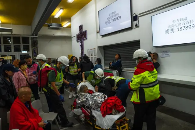BBC中文记者分别于深夜抵达分流伤者的医院,医院外均有警察驻守,雅丽氏何妙龄那打素医院有为宏福苑居民提供的紧急配药服务,而威尔斯亲王医院设有跨部门援助站。
