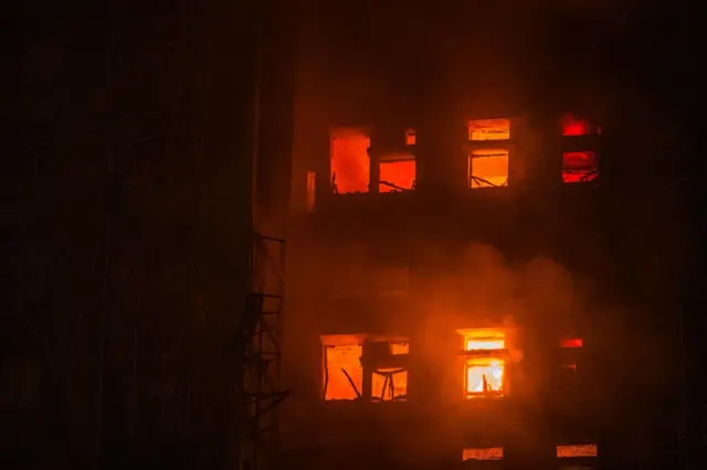 消防表示,目前有两、三座大楼仍严峻,现场温度高。