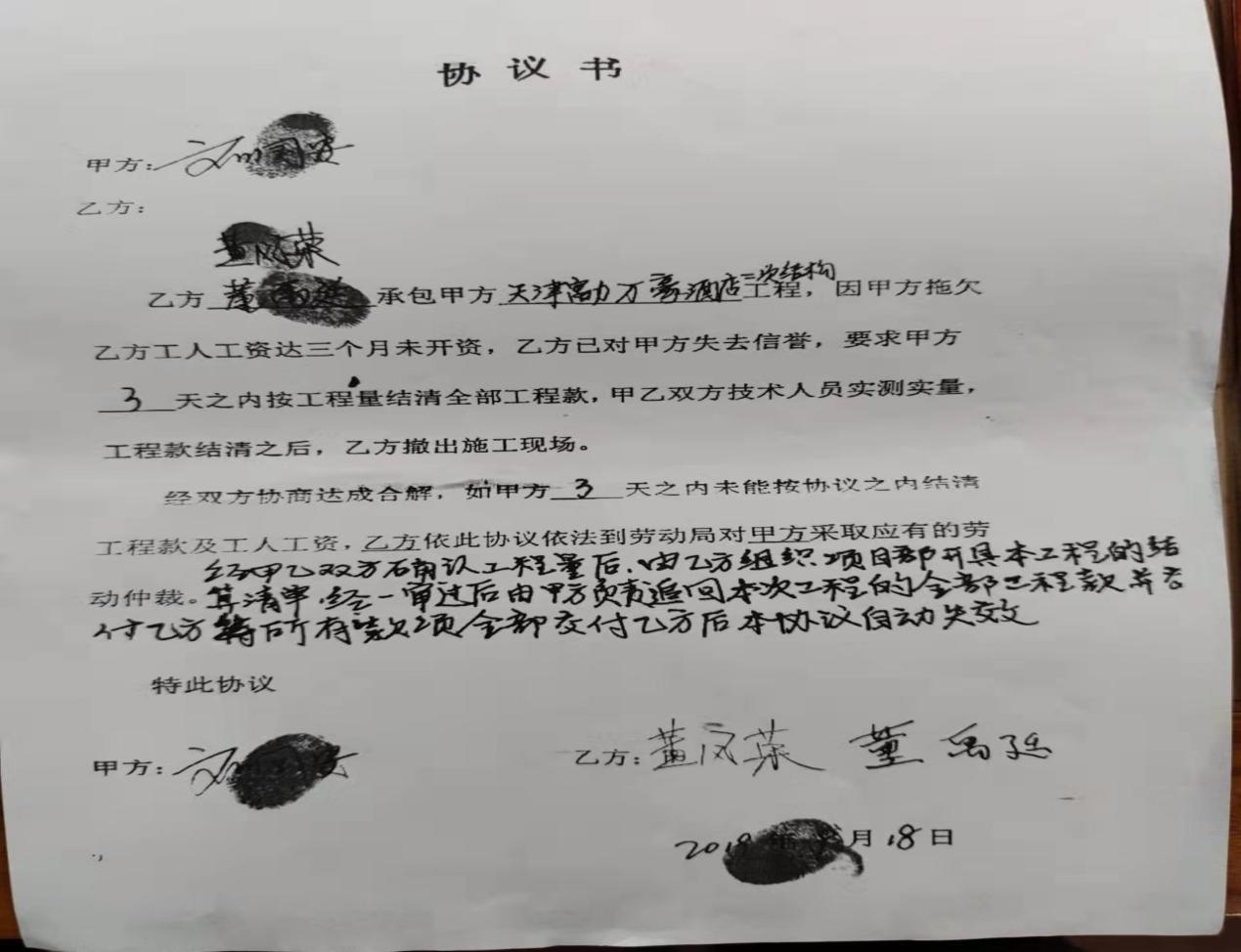 南开区,隶属于天津市,是天津中心城区之一,位于天津市城区西南部,全区总面积40.64平方千米,辖12个街道 ,常住人口89万余人。 据群众读者反映:2013年3月,位于天津南开区鼓楼街道的天津富力城房地产开发有限公司作为发包方,广州天力建筑工程有限公司作为承包方,就天津富力城七号地酒店项目签订总包协议书,由广州天力建筑工程有限公司负责该整体项目的工程建设。 广州天力建筑工程有限公司为节约成本牟取非法利益,将工程进行肢解剥取利润后进行非法转包。 2019年6月,广州天力建筑工程有限公司就天津富力城七号地酒店二次结构工程肢解剥去利润后,向刘国安出具《工程判价单》,其中包含施工项目内容、说明、工程量、单价及计算规则等。广州天力建筑工程有限公司董事长及相关管理人员签字确认,转包给了挂靠淮安市华远建筑工程劳务有限公司劳务资质的无业人员刘国安;刘国安承包后自己不进行施工,又剥取利润转包给无任何资质的无业人员董禹廷;董禹廷是个社会混子,一无资金、二无施工人员、三无任何资质,董禹廷就骗取董凤荣的信任投入资金、寻找工人进行实际施工,从中剥取利益。 ![]() 2020年4月14日,董凤荣就天津富力城房地产开发有限公司作为发包方,广州天力建筑工程有限公司作为承包方承建的天津富力城七号地酒店项目,进行了实际施工,没被支付农民工工资为由,向南开区法院对天津富力城房地产开发有限公司、广州天力建筑工程有限公司、刘国安、董禹廷提起民事诉讼。该院法官王娜在审理期间,无视董凤荣提供的实际施工的证据,在确认董凤荣已参与进行实际施工的情况下,接受刘国安的利益输送,驳回了董凤荣诉讼请求,造成众多农民工工资没法支付。 ![]() 广州天力建筑工程有限公司由广州富力地产股份有限公司控股90%,富力地产集团有限公司控股10%。 经调查分析比对,天津富力城房地产开发有限公司、富力北京地产开发有限公司、富力地产集团有限公司、广州天力建筑工程有限公司都是广州富力地产股份有限公司控股的旗下企业。 天津富力城房地产开发有限公司将天津富力城七号地酒店项目发包给广州天力建筑工程有限公司,并疏于监管任由广州天力建筑工程有限公司进行层层非法转包。默许广州天力建筑工程有限公司将工程肢解后转包给无任何资质的无业人员,真正目的就是以低廉的施工成本完成施工,完全不顾最底层实际施工农民工的劳动报酬,广州天力建筑工程有限公司的上游集团公司能够上市,完全就是靠吸取广大劳动人民血汗进行的财富积累。 《建筑法》第28条规定:禁止承包单位将其承包的全部建筑工程肢解以后以分包的名义分别转包给他人。 《建筑法》第29条规定:禁止总承包单位将工程分包给不具备相应资质条件的单位。禁止分包单位将其承包的工程在分包。 广州天力建筑工程有限公司将承包的工程肢解后进行层层转包并疏于监管,违反了《建筑法》第28条、29条的规定是造成农民工工资不能给付主要原因,是 否应该担负责任? 2020年4月14日至2021年10月31日,在天津南开区法院进行审理“(2020)津0104民初2856号”民事案件期间。国务院下发的《保障农民工工资支付条例》,已于2020年5月1日实施。 根据《立法法》第93条规定:法律、行政法规不溯及既往,但为了公民、法人和其他组织的权益和利益而作的特别规定除外;根据有关司法机关进行的司法解释,刑事方面新法规以“从旧兼从轻”为原则;民事方面新法规以“从新”为原则,即新法规发生效力时的未决案件按照新法规处理。 《保障农民工工资支付条例》是为了保障农民工按时足额获得工资,根据《劳动法》及有关法律制定的。天津南开区法院法官王娜在审理“(2020)津0104民初2856号”民事案件时,并没有参照《劳动法》、《建筑法》、《保障农民工工资支付条例》对案件当事人提供的证据、真实情况进行庭外调查和审理。 董凤荣自2019年6月9日至11月22日期间进行实际施工并产生施工量,在南开区法院2020年7月28日的开定审理的笔录中反映:被上诉人刘国安多次明确表示:“对于工程款同意给付本案董风荣,但是价格总额有差异等等情况”说明被上诉人刘国安对上诉人董风荣完成的工程量及所产生的工程价款的事实是认可的,更能证明刘国安进行了层层转包牟利。 南开区法院在2021年10月25日开庭的庭审笔录中反映:被上诉人刘国安承认上诉人董风荣对工程施工投入了资金和雇佣工人施工的事实。上诉人董风荣举证出示的微信聊天记录及截屏反映的结算情况和结算单,天津市富力城七号地酒店二次结构工程施工人员名单、关于刘国安劳务纠纷一事调解书、协议书等证据反映了被上诉人刘国安和上诉人董风荣就案涉建筑工程量和工程款的结算情况,被上诉人刘国安及本案第三人董禹廷在庭审中发表质证意见时明确表示认可其真实性,能够说明被上诉人刘国安是想向上诉人董凤荣进行结算的,能够说明被上诉人刘国安没有向董凤荣支付工程款。 从“(2020)津0104民初2856号”民事案件两次庭审记录中,可以充分证明:董凤荣带领的工人在广州天力建筑工程有限公司承包的天津富力城房地产开发有限公司开发的天津富力城七号地酒店项目非法转包给刘国安,刘国安又转包给董禹廷的工程项目进行了施工;并且广州天力建筑工程有限公司、淮安市华