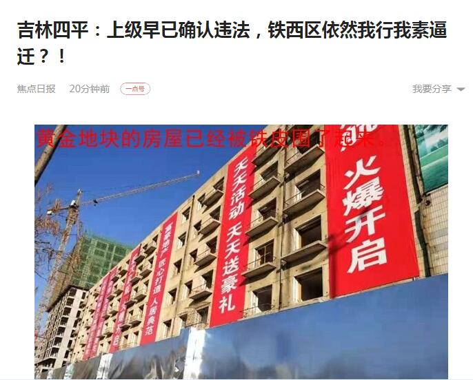 但是,任凭商户、住户们不断质疑,任凭四平市政府的行政复议确认其补偿决定违法,依然不能阻止铁西区政府的强拆和逼迁。商户、住户们向媒体反映:2020年11月26日,铁西区城管数十人在没有任何相关依据的情况下,对11号楼强行加筑围栏,很多房主的单元门和窗户被开发商用土堆堵死,正在经营的商户临街的门面也被用铁皮围栏围上......房主们质疑,开始只是富豪地产对商户、住户们断水断电断气断暖断路,到现在,铁西区政府指使的城管已经亲自上阵了,用铁皮围栏将整栋楼围住。他们不解,政府本来是负责监管的,而现在的铁西区政府其监管作用体现在哪里?是否充当了帮助开发商获取暴利的帮凶?当初的挂牌出让方案是怎么签署的?对开发商做了哪些约束?能否将方案公之于众?但当房主们提出这些质疑并强烈要求出示依据时,城管答复是“上旨下派,没有文件”,强行将整楼围起。商户、住户们据此认为这种行为严重违背了《国有土地上房屋征收与补偿条例》第三十一条的规定,是典型的强拆,是对现行法律法规的公开挑战,也是对上级政府的藐视和挑战。