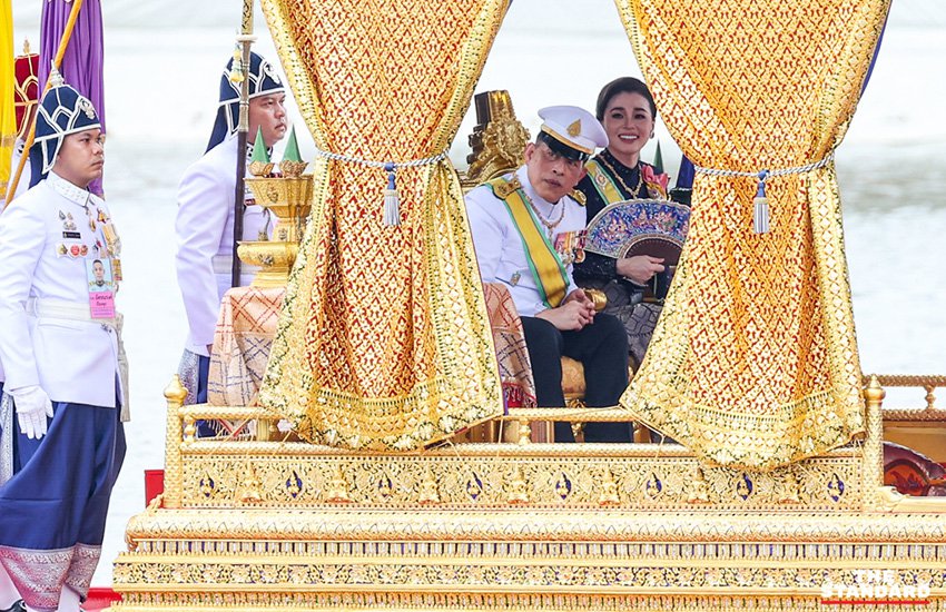 【编译江湖/曼谷综合报导】第十世王帕哇栖腊诰昭育华陛下及素蒂妲王后殿下,27日下午循王室传统,举行任内首次水上銮驾布施活动,在曼谷湄南河乘坐「金凤号」木造龙舟,顺流而下驾往黎明寺主持布施法会。诗丽汪娜娃莉纳丽乐公主殿下等高层王室成员陪同,历史悠久的水上銮驾布施活动再现湄南河,上千名海军士兵整齐划一划著依照古法制作的船只,加上中气十足的赞颂歌声,重现泰国传统精致文化,最终圆满完成首次水上銮驾布施法会。