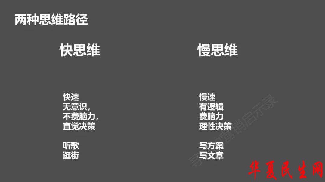 系统2将注意力转移到需要费脑力的大脑活动上来,例如复杂的运算,可以称为慢思维。