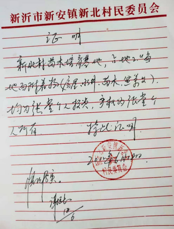 2019 年下半年,新北村通知称八一干渠修路占地,要求拆除苗木基地。