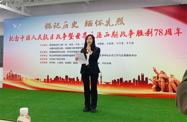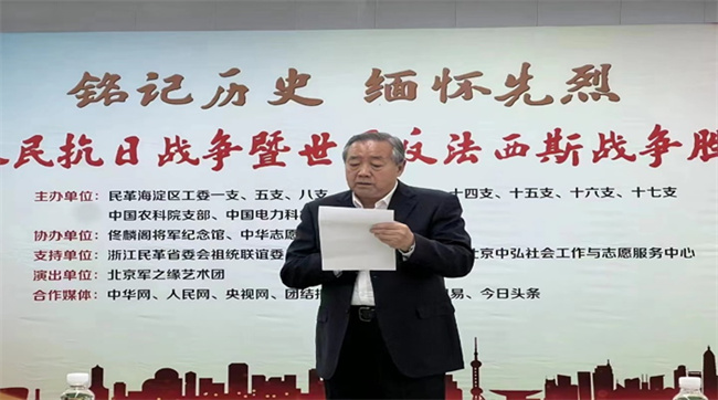 祭奠结束后,全体人员移步至《佟麟阁将军纪念馆》举行庄严隆重的纪念仪式,民革海淀区工委副主委宋志红在致辞中表示重温历史,缅怀英烈,是为了坚守和传承中国人民英勇的抗战精神。今年9月,郑建邦主席在民革市委会“凝心铸魂强根基、团结奋进新征程”主题教育宣讲报告会上指出,围绕政治坚定、组织坚实、履职有力、作风优良、制度健全,努力把民革打造成为高水平的新时代中国特色社会主义参政党。民革海淀区工委妇女与老龄委员会副主任宋敬可献上原创诗歌朗诵《在英雄的墓碑前》,深情的表演感染了现场的每一位观众。《佟麟阁将军纪念馆》为海淀区爱国主义教育基地,副馆长苑建国向大家介绍了纪念馆建设的历史沿革和动人故事。佟麟阁将军嫡孙佟晓冬充满激情地讲述了祖父的战斗事迹,担当精神,佟晓冬表示抗战中涌现出无数与祖父一样为国捐躯的英雄和无名英雄,作为后代必将赓续先辈的精神。