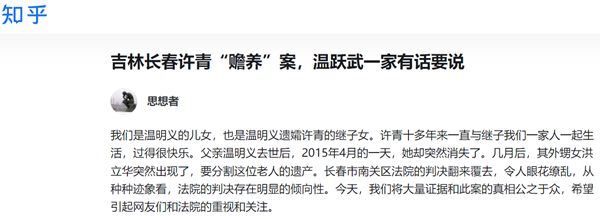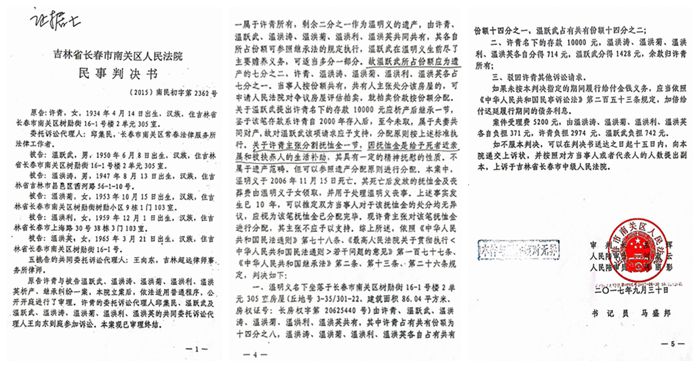 我们是温明义的儿女,也是温明义遗孀许青的继子女。许青十多年来一直与继子我们一家人一起生活,过得很快乐。父亲温明义去世后,2015年4月的一天,她却突然消失了。几月后,其外甥女洪立华突然出现了,要分割这位老人的遗产。长春市南关区法院的判决翻来覆去,令人眼花缭乱,从种种迹象看,法院的判决存在明显的倾向性。今天,我们将大量证据和此案的真相公之于众,希望引起网友们和法院的重视和关注。