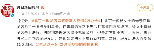 在某理发店被诱导消费60万,