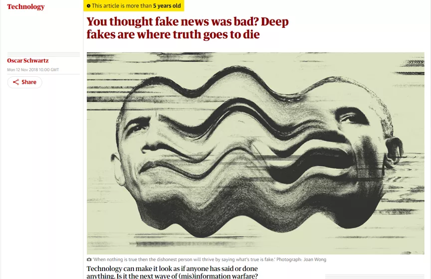 英国《卫报》2018年刊发的关于深度伪造的报道,聚焦政治领域。
