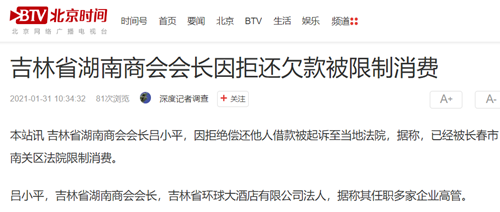 吉林省湖南商会会长因拒还欠款被限制消费