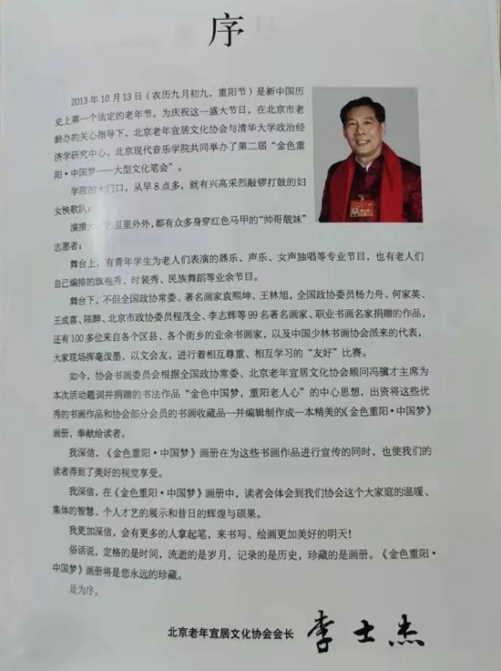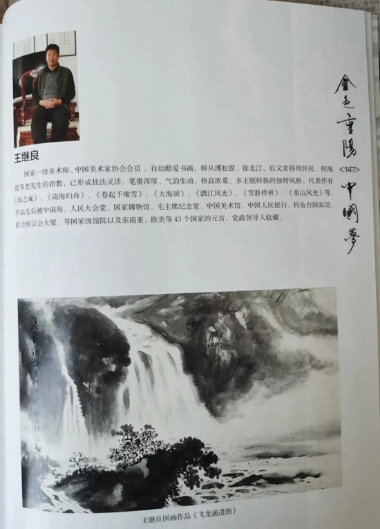 2013年10月,我们北京老年宜居文化协会组织书画笔会,王继良积极支持,作品入选由著名作家、画家冯骥才题写书名的《金色重阳·中国梦》画册。