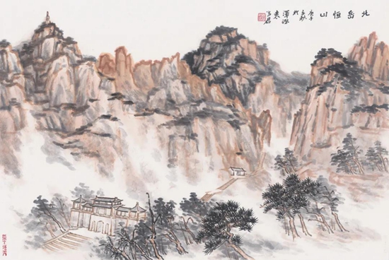 近几年他多次前往全国各地游、观、悟、记,写生采风,无论从巍峨雄壮、岩峦万嶂的太行山、泰山、华山、恒山,到婉约秀丽、青山如黛的广西桂林、广东惠州、重庆山城,到自然质朴、古韵幽幽的湖北宜昌三峡、四川自贡古盐都,再到神秘悠远、沉雄厚重的广安神龙寨,最后到规模宏大、佛光沐浴的五台圣境,自始至终都贯穿着“游观悟记”与“矿物质颜料在山水画写生中的应用”这两个他所研究的课题,他在不断的写生探索和融合中逐步形成了自己独特的写生语言和艺术风格。