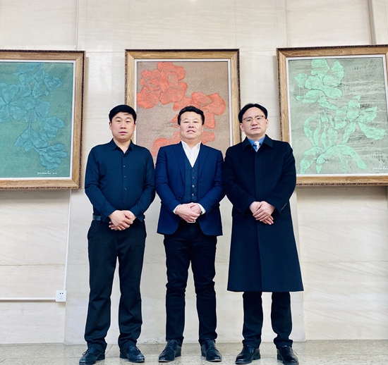 北京时代京辉文化有限公司董事长魏福良,著名艺术家袁小楼,北京鸿蒙伟业科技有限公司董事长汪超合影