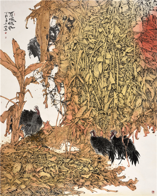 2017年9月,《秋篱掩禽》入选“壮美内蒙古 亮丽风景线”第十届中国西部大地情中国画、油画作品展