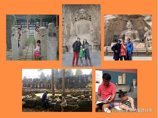 其中我穿插了我们一家在国内外旅行时参观的古迹、展览、艺术品的图片,还有这几年我带“在艺术中行走”的孩子们参观相关展览、国外艺术游的内容以及活动中孩子们的临摹、写生或创作作品。